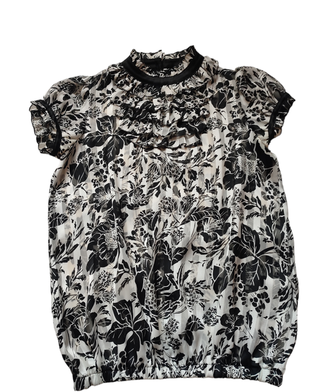 Блузка Ayhan с короткими рукавами в отделке и черной лентой по горловине и рукавам. Размер:" M" Длина: 62 см Пог: 48 см Стан идеален.