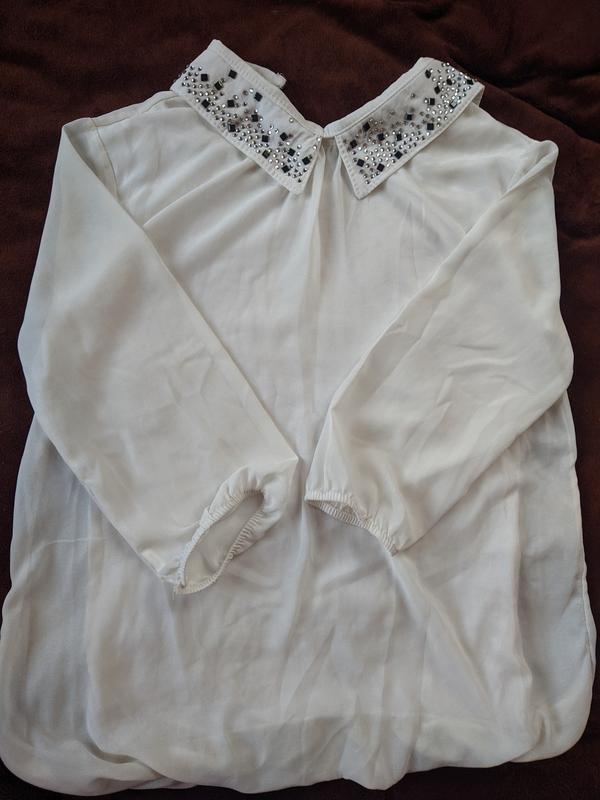 Красивая блуза белого цвета с воротничком, размер S-M, есть дефект (оттопли некоторые камешки на воротничке)
