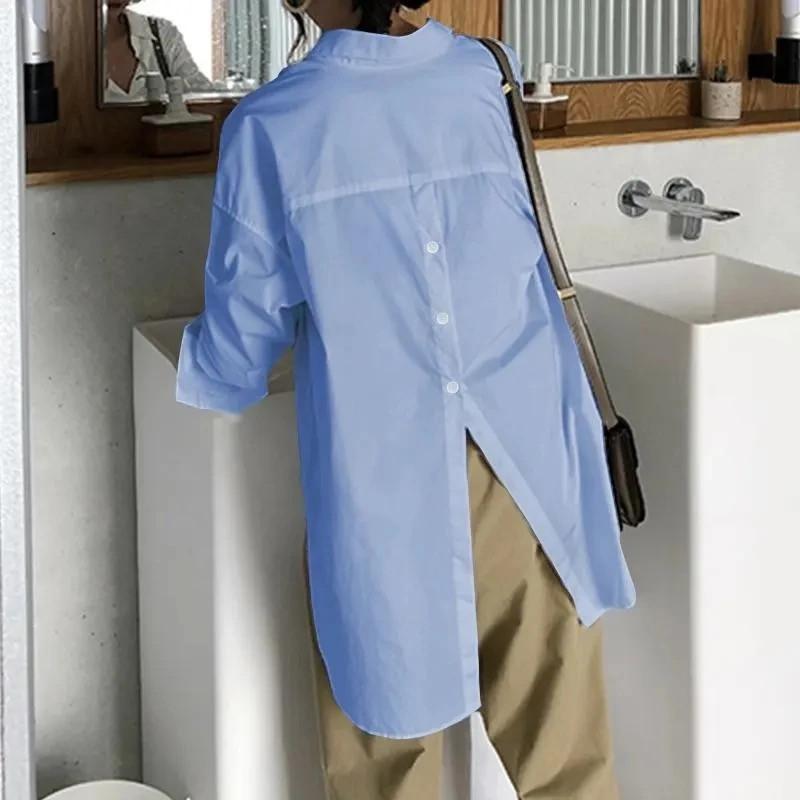 Элегантная длинная голубая блузка с разрезом на спине и пуговицами. Спереди вид обычной оверсайз рубашки, придающий ей особый стиль Женская рубашка оверсайз На застежках на спинке Расширена вниз Свободна в бедрах С приспущенной линией плеча Стильный кэжуал для всех типов фигуры! ▪️▪️▪️ Ткань: супер софт Размеры: 42-44, 46-48, 50-52 ------------------------------------------------------------------------------------------------------ Размерная сетка Замеры Размер 42-44 Размер 46-48 Размер 50-52 Размер 54-56 ОГ изделия: 110 см 118 см 126 см 134 см Ваш ОГ: 88-108 см 106-116 см 114-124 см 122-130 см Длина спереди: 68 см 70 см 72 см 74 см Длина сзади 78 см 80 см 82 см 82 см