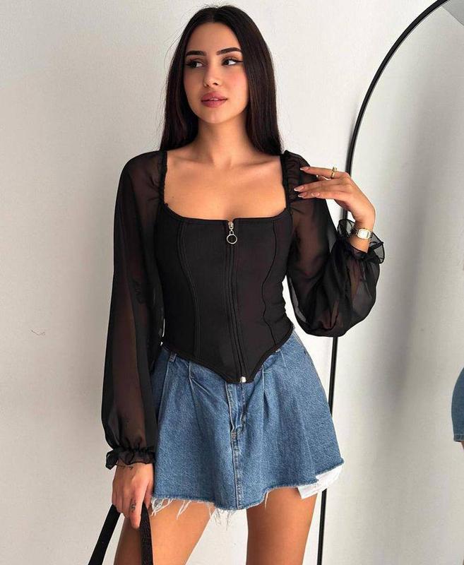 Новинка ❤️ Кофточка 6️⃣ Ціна: 495 грн 🎁 🔹️Модель: 193 🔹️Тканина: креп-дайвінг + шифон 🔹️Розміри: 42-44, 46-48 🔹️Кольори: білий, чорний Заміри : 42-44 Обʼєм грудей: 80-90 см 46-48 Обʼєм грудей: 88-98 см Довжина спереду виробу : 34 см Довжина рукава: 62 см