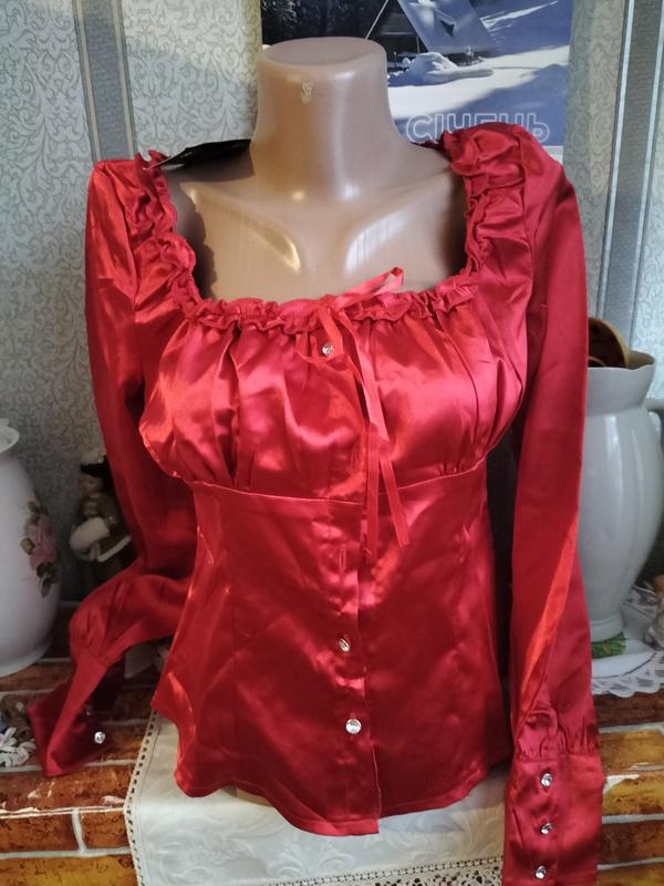 нова блуза, цікавий крій, спина шнурівка, високий манжет, тканина під атлас,не вистачає двох гудзиків, але в комплект надам два схожі плечі 36 пог46 довжина 56