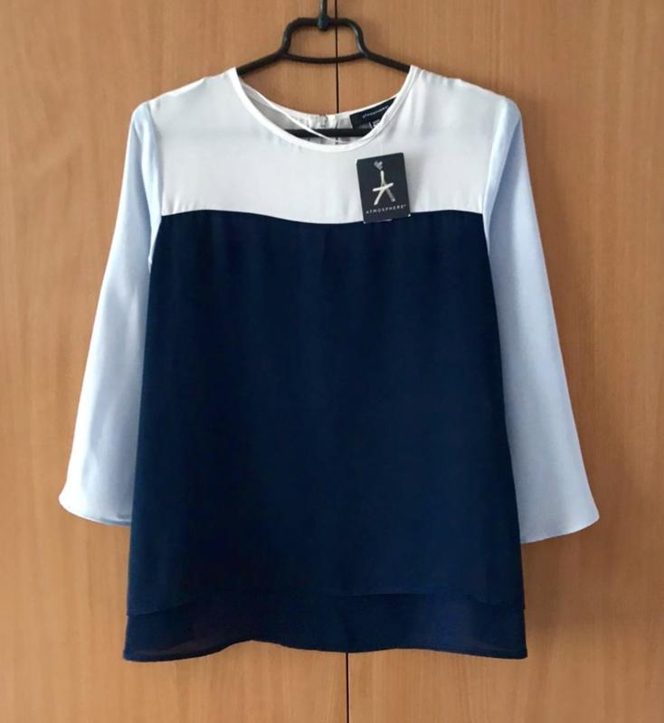 Atmosphere нова блузка. Размер 12/40, идет на M, L. Длина 57/60 см. ПОГ 52 см. Рукав 45 см. Плечи 39 см. Полиэстер.