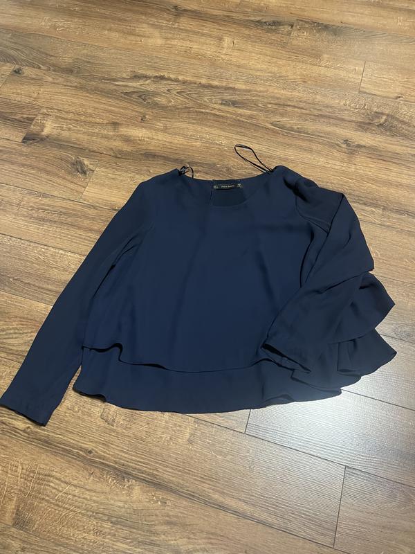Шифоновая блуза в темно-синем цвете, свободная Размер S