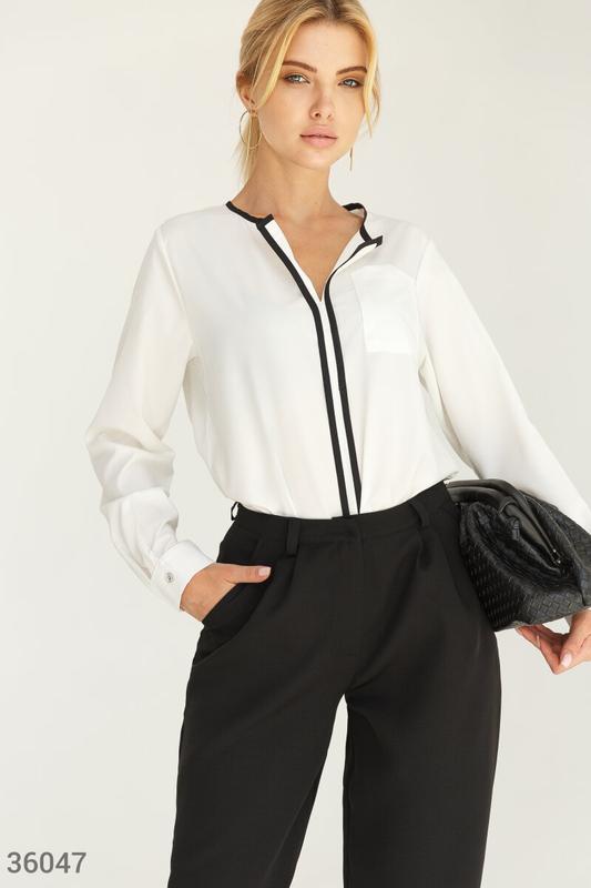 Невесомая блуза из шелковистой ткани с черными акцентами. Можно носить заправленной или на выпуск или под пояс.