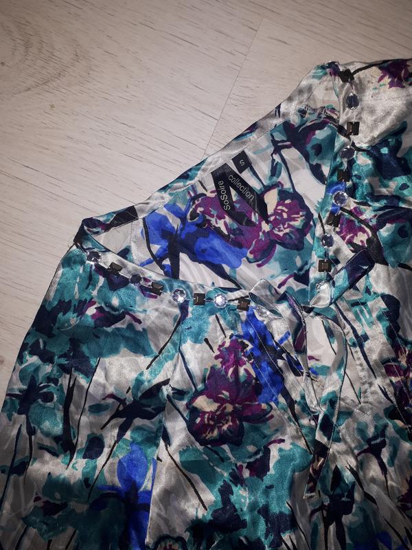 Блуза,цвет как на фото. Выглядит очень красиво. Приятная мягкая тканые на,100% полиэстер. Реглан. Горловина + камни. Вказано р.S. Длина 70см,грудь 51см, рукав от горла 52см, низ резин ка 35см без растяжения Отсылаю УП, НП