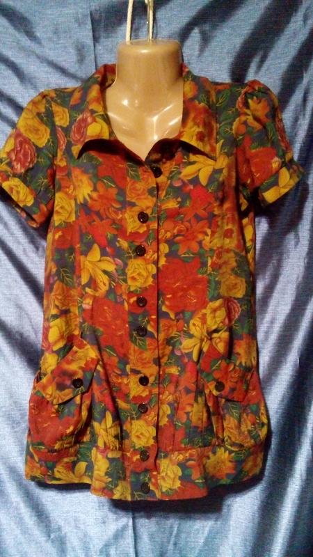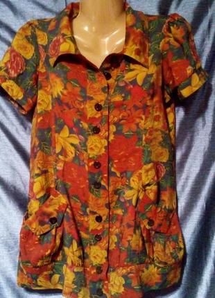 Блуза в цветочный принт с застежкой на пуговицах спереди и карманами.Легкая, комфортная, свободного кроя. Замеры: длина - 73см, плечи - 36см, ПОГ - 49см, ПОТ - 50см, ПОБ - 55см. Блуза куплена в турции, не носилась.