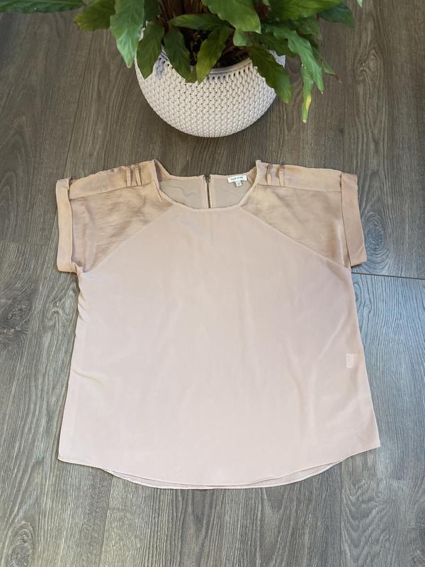 Женская блуза размер М, в нежно кремовом цвете Состав: 100% полиэстер Длина: 54 Бюст 52 По линии низа 53