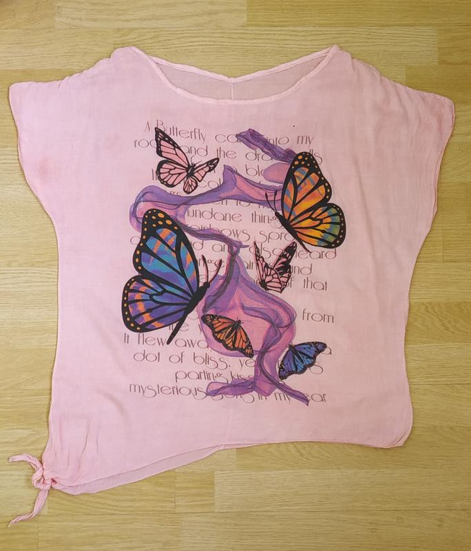 Блуза из очень тонкого, мягкого льна. Воздушная, слегка прозрачная , дышащая, быстро сохнет, красиво смотрится. Один бок длиннее другого, и завязывается в узелок, за счёт чего можно чуть моделировать. Подойдёт на женщин размерами 46-50. Хорошо смотрится как свободная, так и свободного прилегания, а за счёт узелка можно обыгрывать и затягивать по талии. В знойную жару, супер вариант. ширина блузы 53см. длинна от плеча по короткой стороне 61см.