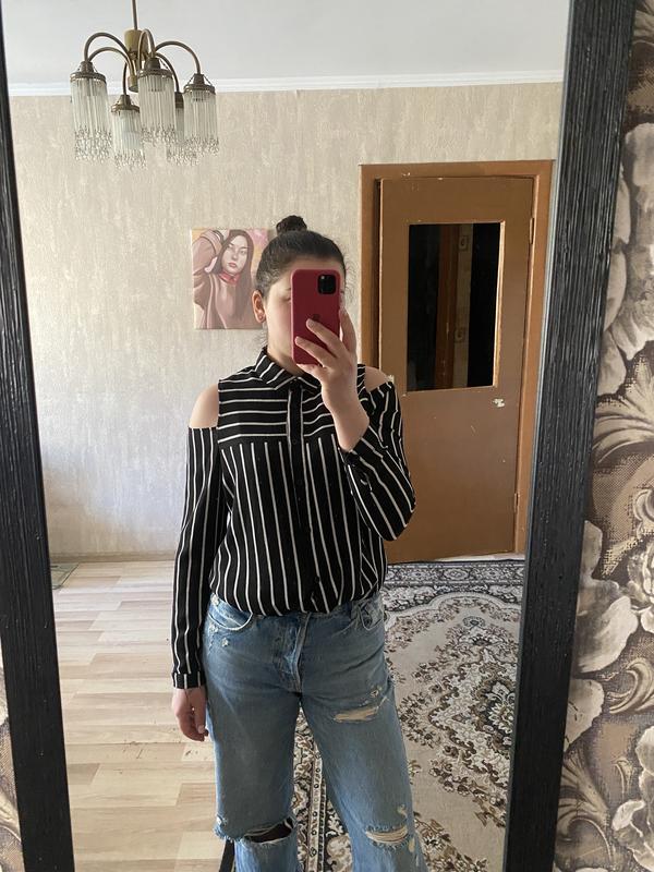Блуза в полоску с открытыми плечами. Размер s-m. Мой рост 169