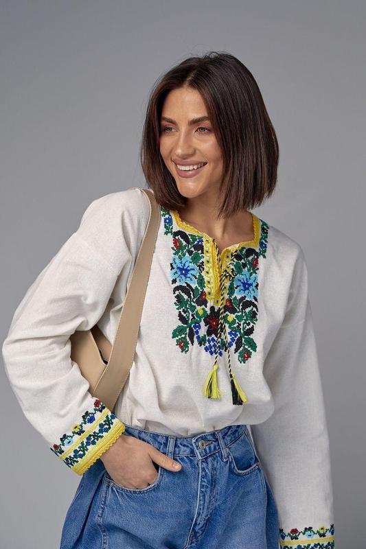 Жіноча біла блуза-вишиванка з довгим рукавом