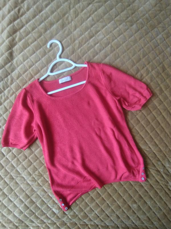 Блуза на размер 44-46,плечи 34 см, подмышки 45 см, длина 54 см.