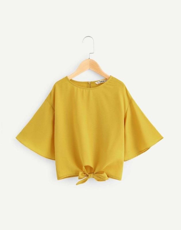 Желтая шифоговая блуза с укороченным рукавом клёш shein #477