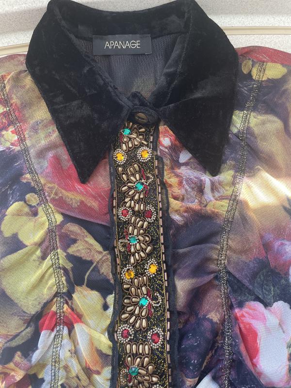 Блуза женская на подкладе, рукава прозрачные. Размер S. Длина 48 см, пог 42