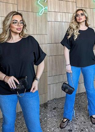 Жіноча блуза із легкого матеріалу супер -софт, приємний до тіла. Має овальний виріз, та ґудзик на спинці. Розміри :48-52,54-58 Тканина : софт Туреччина Колір : білий, електрик , чорний, пудра Розмір 48-52 ОГ грудей 120 см; довжина довжина 67 см; Розмір 54-56 ОГ грудей 134 см, довжина блузки 69 см. ins