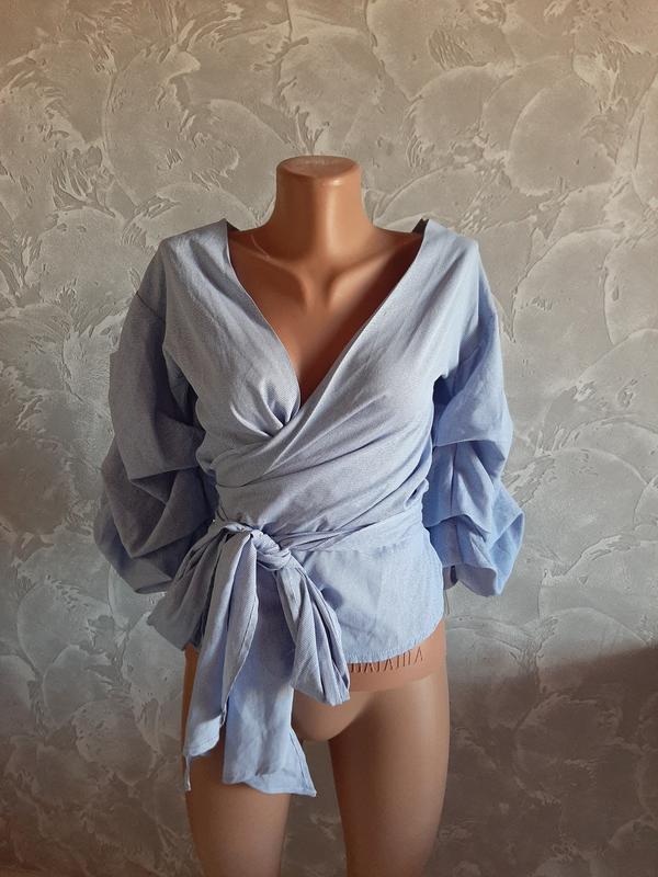 Блуза шикарна на запах із величезним поясом, можна по-різному зав'язувати.