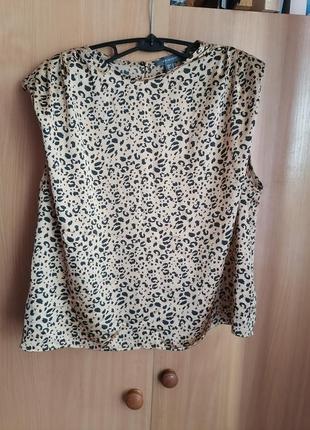 Атласная блуза, леопардовый принт Золотисто-черного цвета.. Размир 42EUR/14UK/10 USA. ПОП 46 см, ПОГ 62 см, ПОТ 58 см. Длина 58 см. Производство Турция.