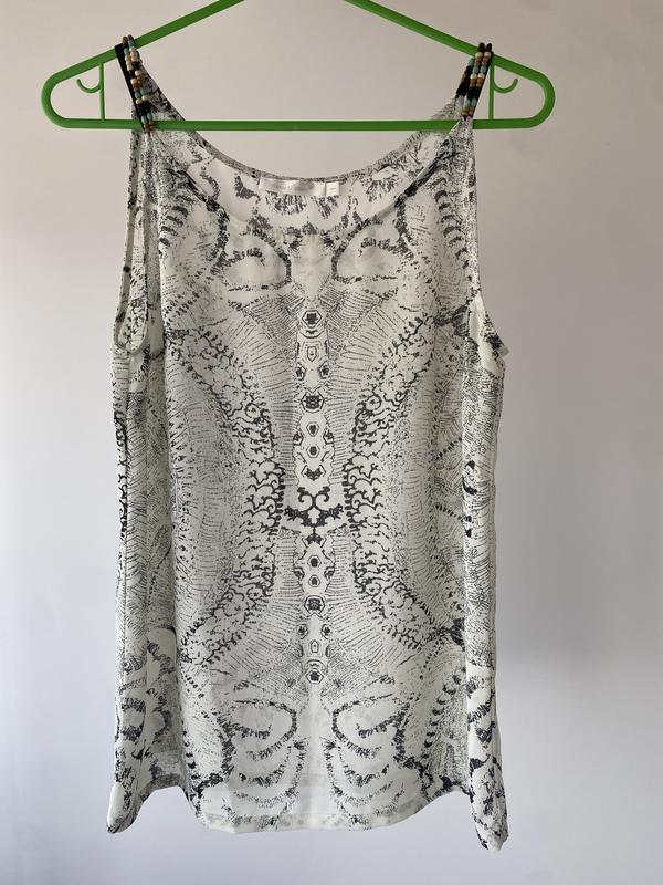 Невероятно красивый топ, размер xs-a, декорирован деревянными бусами на плечах
