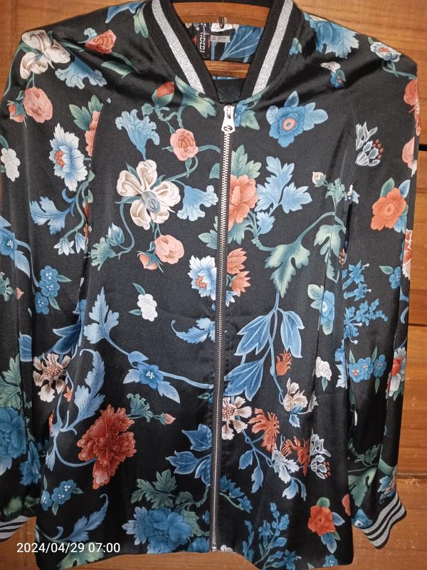 Кофта,блуза-бомпер,в хорошем состоянии.Цикава и стильная, легкая и приятная на ощупь.Цветочный принт,еет подкладка.На замочке.Можна надевать как самостоятельно,так и на топ, как с джинсами так и с юбкой.Н/о под влагалищами 46, длина 63,рукав 67 шее.