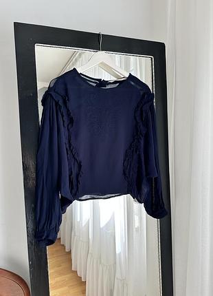Красивая шифоновая блуза, спинка прозрачная на пуговицы, перед с подкладкой