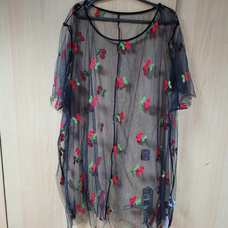 Кофточка сеточка очень большого размера.Черная. обхват 180+, рукав 27, длина 94.