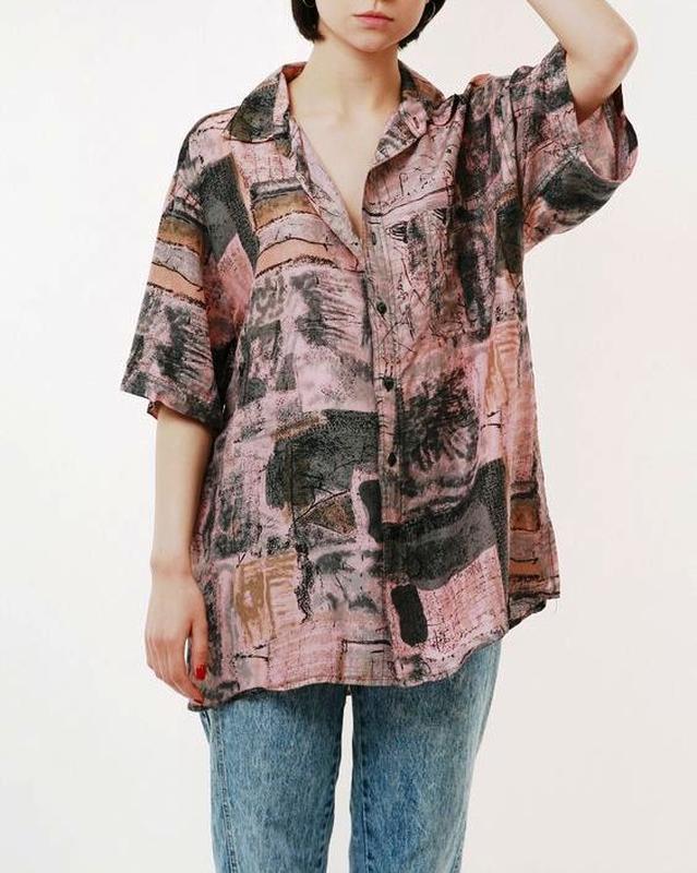 ❤ Очень красивая рубашка цвета какао с шикарными пуговицами (просто произведение искусства!) станет настоящей находкой для ценителей стиля и комфорта. Вещь винтажная, но в отличном состоянии, имеет сетчатую подкладку (хорошо держит форму), свободного кроя рукава 3/4, небольшие разрезы по бокам. Параметры (измерения без натяжения ткани): Ширина по линии груди - 65 см Ширина по линии талии - 65 см Ширина по линии бедер - 68 см Ширина линии плеч - 47 см Длина рукава от плеча - 40 см Длина изделия по центру спины - 81 см Ширина линии бицепса - 24 см. Растяжимость: отсутствует. Состав - увы, все бирки срезаны, однако ткань очень качественная и на ощупь как шелк, имеет характерный глянцевый блеск, почти не мнется (поэтому удобно брать в дорогу, чтобы выглядеть на все 100!)