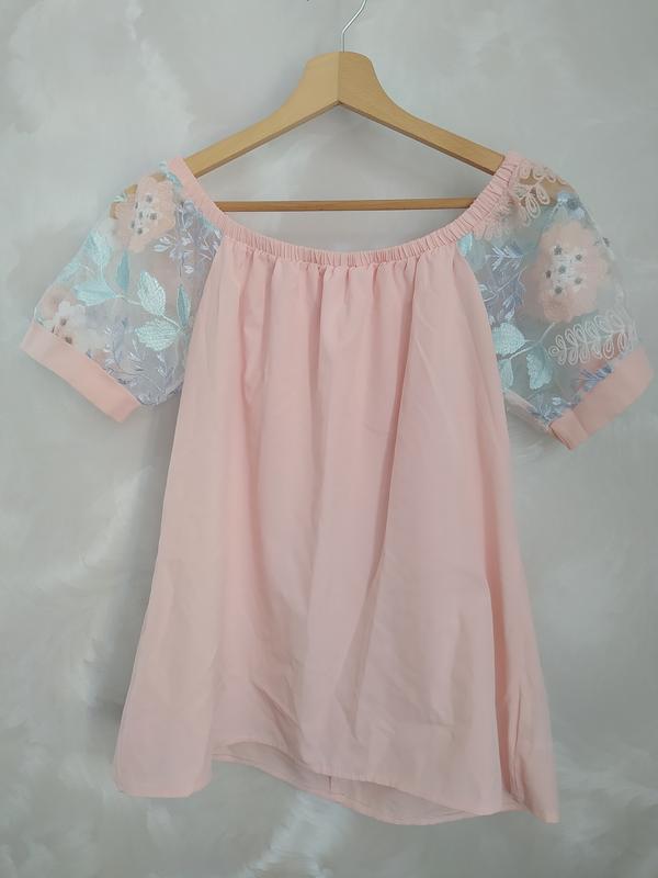 Блуза с открытыми плечами, размер L ложится по фигуре, но на S будет свободная