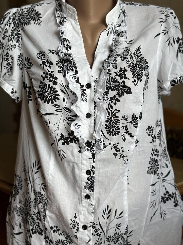 Хорошего качества приятная на ощупь, легкая и комфортный 100% хлопок выглядит стильно и элегантно Состояние новой вещи без дефектов 💫Замеры: ПОГ52 см длина рукава 19см, длина блузки 74 см