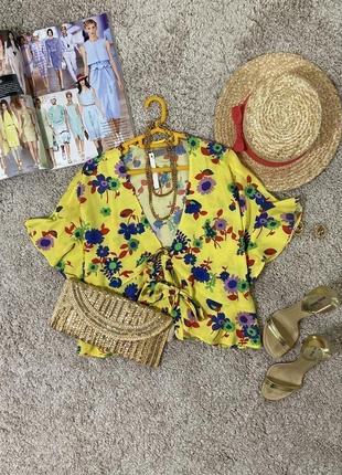 Для більш точного визначення, виміри, порівнюйте із вимірами подібної речі, а не зі своїми обсягами. Актуальна яскрава блузка топ оверсайз. Тканина тонка, не просвічується, не тягнеться. Крій вільний. Лінії плеча немає. Застібка: зав'язки. Декоровано рюшами. Колір яскравий жовтий, квітковий принт. Стан: новий, сток із биркою. Дефекти: ні. Розмір на бирці: 12/40 можна і на більше (Виміри виробу вимірюються у напівобхваті, а не від шва до шва!) Виміри виробу: Рукав від горловини 36см. Ширина рукава 23см. Напівобхват грудей 66см., Напівобхват низ 64см., довжина по спині 52см. довжина від плеча 47см. Склад тканини: 100% віскоза. Країна виробник: Румунія. Бренд: Asos. Оплата і доставка: Оплата на картку монобанк. Бронювання на оплату тільки 24г. При змінах наміру купувати обов'язково повідомляйте! Доставка: На час введення воєнного стану уточнюйте чи можлива доставка до Вашого пункту. Актуальні новини можна уточнити на сайті перевізника та за номером телефону контакт-центрів. Не забудьте ПІДПИСАТИСЯ щоб бути в курси всіх новинок та розпродажів!