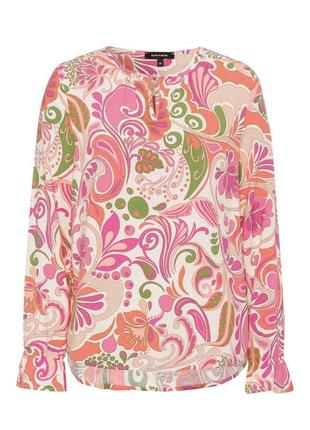 Блуза від MORE & MORE виготовлена з чистої віскози і має прямий крій. Має всеохоплюючий візерунок і виріз у замкову щілину.