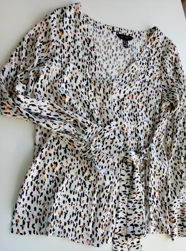 Красивейшая блуза с длинным рукавом в модный принт из натуральной ткани. 100% вискоза. Идеальное состояние. Полуобхват груди - 48 см, Полуобхват талии - 47 см (уменьшить можно за счет пояса), Полуобхват по низу блузы - 50 см, Ширина по плечам - 39 см, Ширина плеча - 8 см, Длина рукава с манжетом - 63 см, в т. ч. манжет 10 см, Длина блузы - 66 см)