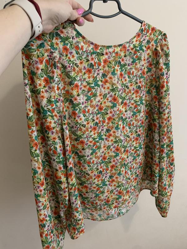 Легкая блуза с ярким принком. На теле смотрится очень красиво и легко.