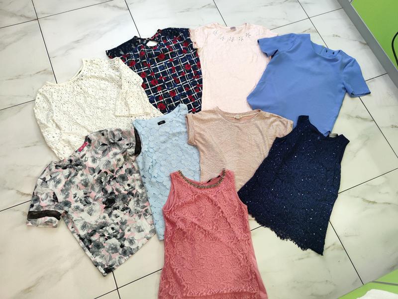 По всем вопросам обращайтесь в ЛС. Пакет женских брендовых летних вещей в состоянии новых. Без дефектов и нюансов, без следов носки. Все вещи размера XS (36), на габариты девушки размером XS. Так же вещи подойдут на девушку подростка 12-13 лет (на рост 152-158см). При необходимости скину больше фото и замеры каждой вещи. Все вещи качественные. Цена указана за 1 вещь - 200грн. Если брать пакетом - будет дешевле. Возможна пересылка на примерку домой и возврат. В продаже ещё есть юбки размером XS (36), подходящие под эти кофточки (фото по запросу). Пересылаю по предоплате любой почтой или безопасной оплатой Шафа. Отправка в день заказа. 1. Замеры белой ажурной: Длина - 56 см Ширина в груди - 42 см Ширина в талии - 42 см Ширина внизу - 43 см 2. Замеры синей в розочку: Длина спереди - 58 см Ширина в груди - 42 см Ширина в талии - 43 см Ширина внизу - 48 см 3. Замеры черничной: Длина спереди - 57 см Длина сзади - 63 см Ширина в груди - 44 см Ширина в талии - 43 см Ширина футболки внизу - 44 см (перед закруглениями) 4. Замеры розовой со стразами: Длина - 57 см Ширина в груди - 40 см Ширина в талии - 38 см Ширина внизу - 41 см 5. Замеры серо-розовой в розочку: Длина - 55 см Ширина в груди - 44 см Ширина в талии - 44 см Ширина внизу - 46 см 6. Замеры голубой ажурной маечки: Длина - 59 см Ширина в груди - 40 см Ширина в талии - 40 см Ширина внизу - 43 см 7. Замеры блестящей кофточки: Длина - 56 см Ширина в груди - 44 см Ширина в талии - 40 см Ширина внизу - 41 см 8. Замеры синей майки с паетками: Длина - 58 см Ширина в груди - 41 см Ширина в талии - 38 см Ширина внизу - 45 см 9. Замеры розовой ажурной маечки: Длина - 58 см Ширина в груди - 42 см Ширина в талии - 40 см Ширина внизу - 44 см