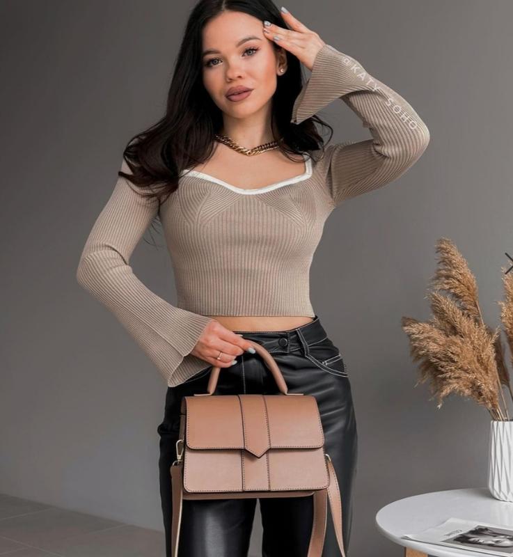 Топ кофтинка з акцентним вирізом і цікавими рукавами