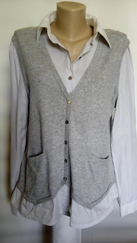 блуза оригинальная, имитация рубашка с жилеткой,длина65, пог-60 и тянется65 легко, полуобхват по талиа54 -56 и тянется60, рукав63-64,ширина по низу62 и более64 легко,жилет из ткани коттон,вискоза,ангатора...,сорочка--коттон100%,пояс на талии регулируется, регулируется