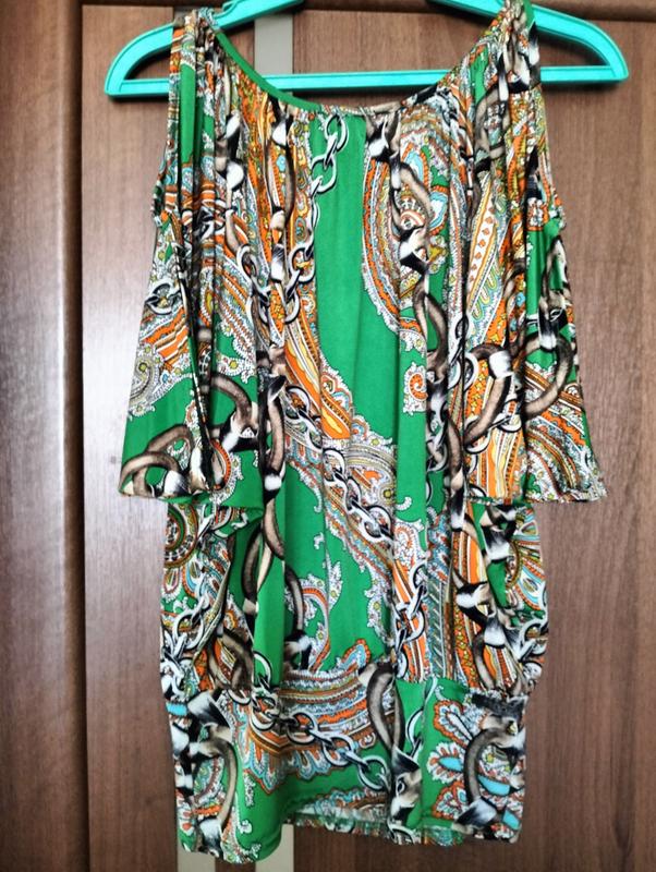 Размер M/L. Фасон "летучая мышь".На плечах разрезы, на одном завязке.Замеры: ПОГ примерно-65, по низу 41