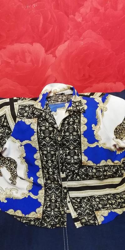 Рубашка в стиле Версаче. Размер по бирке 24. Замеры пог и Поб - 80. Длина 74. Смотрится стильно.
