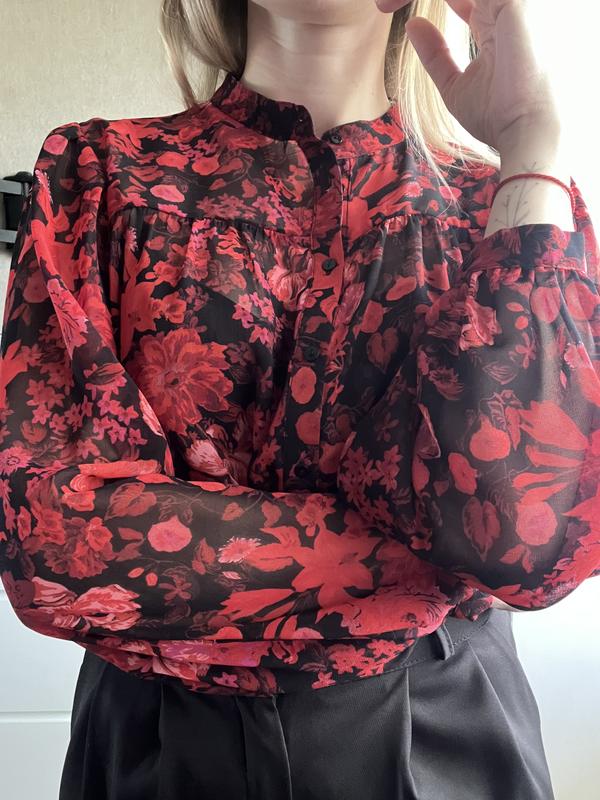 Полупрозрачная шифоновая блуза Свободный крой Размер указанного - L Состояние - идеальный Длина рукава -60 см Длина изделия -61 см