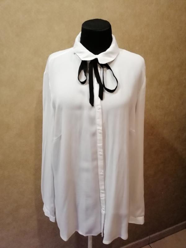 Белоснежная блуза из вискозы. Состояние новой вещи Размер указан 50, возможно подойдёт и на больший Длина 75 Плечи 42 Рукав 65.5 Пог 56
