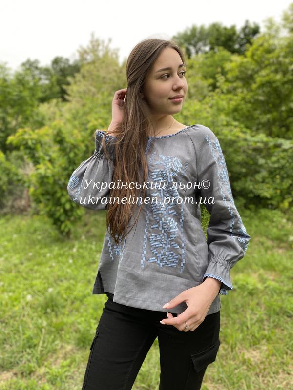Блуза тереса темно-серая галерея льна, 40-52рр. вышиванка