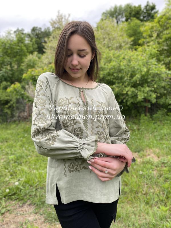Блуза тереса хаки галерея льна, 40-52рр. вышиванка