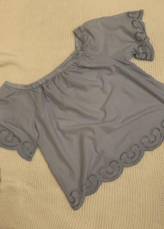Легка х/б блуза на літо. Колір сіро- голубий. Можливо гарненько спустити на плечі або підняти рукавчик. В ідеальному стані.
