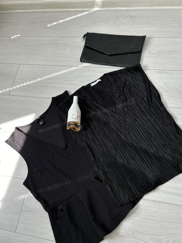 Брендовые черные блузы Блуза с баской от H&M Размер М Стан - идеальный Черная плисперированная блуза от Mango Размер М Стан - идеальный