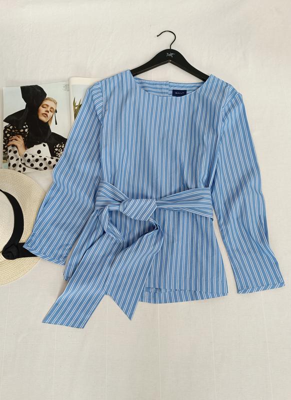 🌿синяя блуза в полоску бренда Gant с поясом, ткань хрустящий коттон Размер:L Замеры:ПО груди 57 см, длина 65 см, рукав от горловины 67 см