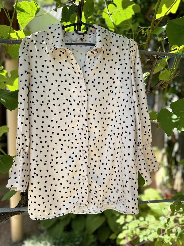 Красивая блуза в сердечко, бирка срезана Размер 12 (наш 40-42) Стан очень хорош, имеет несколько мини затяжек на ткани, в носке незаметно Замеры: длина 63 см, ширина 50 см, рукав 50 см