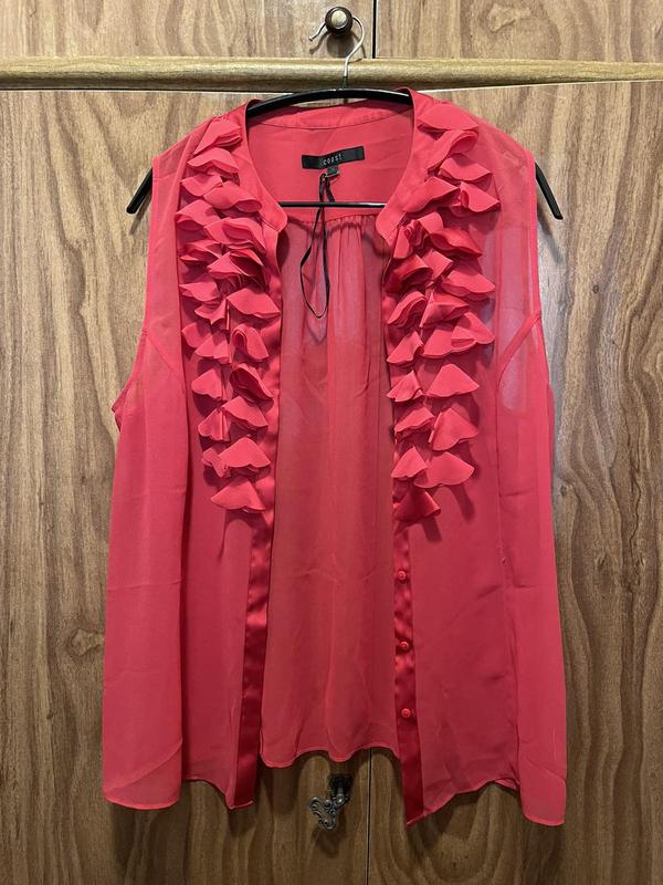 Невероятная, легкая блуза.ПОГ 53, длина изделия 63,ПО по низу 60.Цвет коралл, очень красивый.