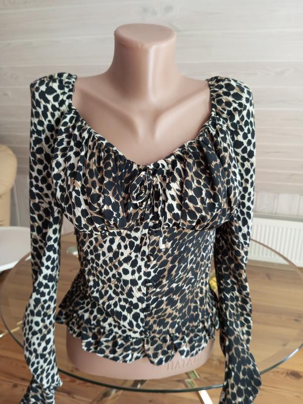 Блузка в леопардовый принт длина 47 о б г 46 низ 35 широкая резинка рукав 68