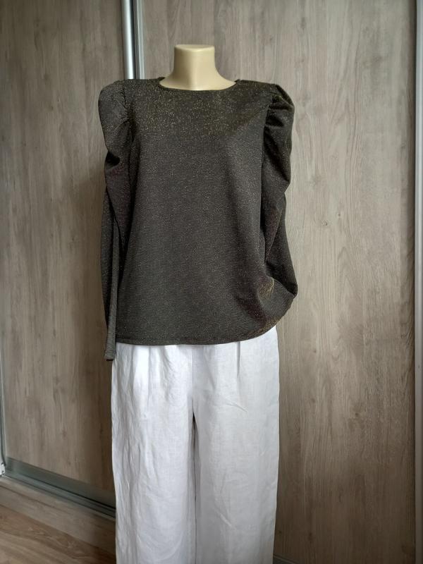 ☝️УВАГА!!!ЗНИЖКА ДІЄ ТІЛЬКИ ПО ПОВНІЙ ОПЛАТІ ОДРАЗУ НА КАРТУ!!!☝️ Красива ошатна фірмова блузка, тканина з люрексом,цікавий рукав,пряма,тканина тягнеться, ззаду на гудзику. Плечі 38см Напівобхват під руками 60см Напівобхват в талим 54см Напівобхват по низу 60см Довжина рукава 65см Довжина виробу 67см ПОВЕРНЕННЯ НЕМАЄ!!! Доставка: Відправляю Укрпоштою два рази в тиждень, Новою поштою після повної оплати на картку Приватбанку