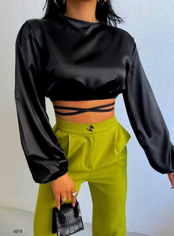MUST HAVE🔜🔜 Стильные трендовые кроп-блузки на запах с длинными завязками🥰 Ткань полированный софт-шифон 🌈 черные Размеры: S, M 〰️Арт. 569