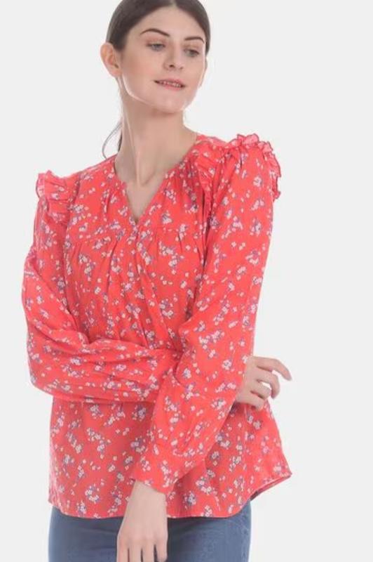 Фирменная, коттоновая блузка свободного кроя в цветочный принт, плечи 42, ПІГ 62-64, ПИТ 64, рукав 62, длина изделия 67.