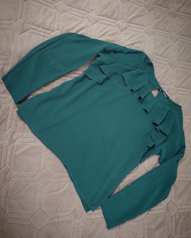 Изумрудная блуза с оборкой, пог - 46, пот - 47, длина -:55, рукав,-63